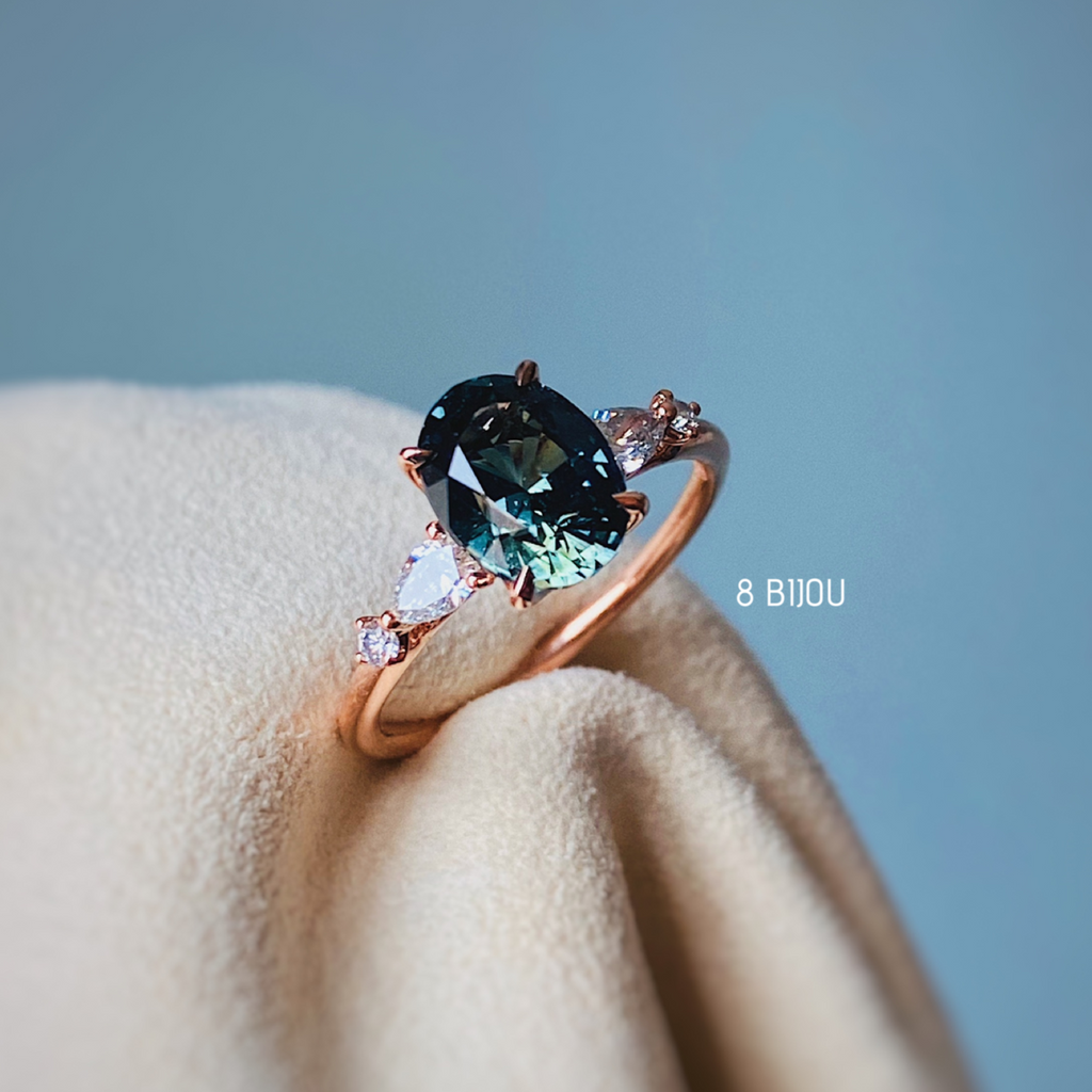 ONE OF A KIND・18K ROSE GOLD GREEN SAPPHIRE & DIAMOND RING