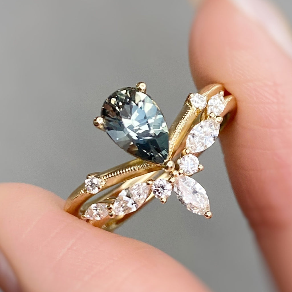 VINTAGE VELVET・18K CHAMPAGNE GOLD GREEN SAPPHIRE & DIAMOND RING