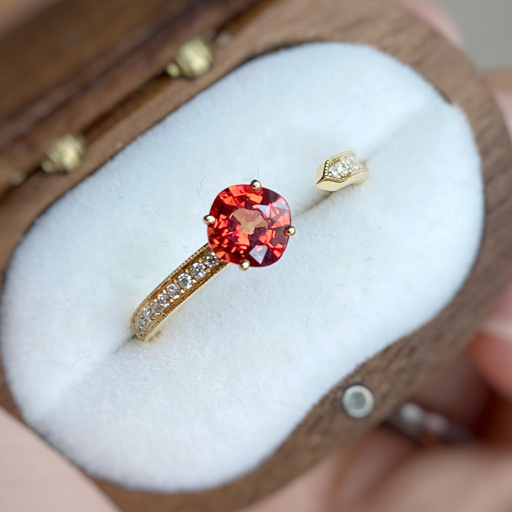 ONE OF A KIND・18K CHAMPAGNE GOLD ORANGE SAPPHIRE & DIAMOND RING